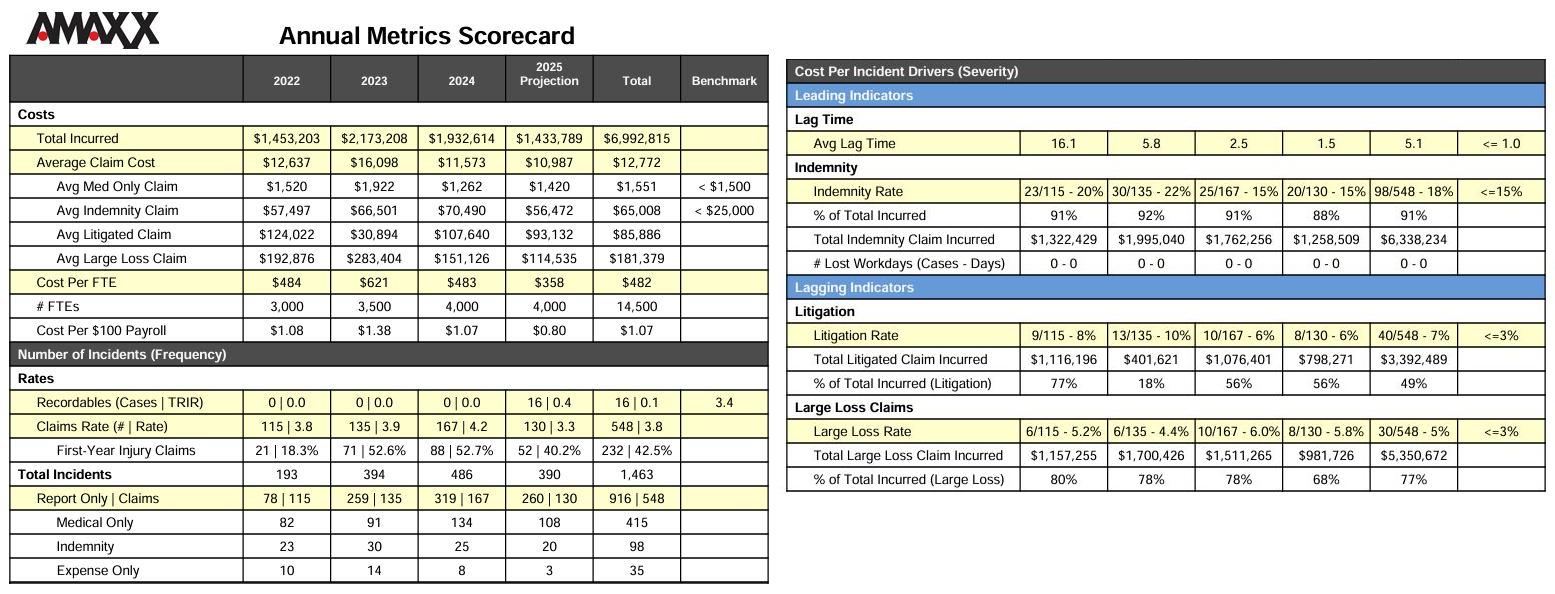 A single, at-a-glance view of the five metrics that drive workers’ comp outcomes